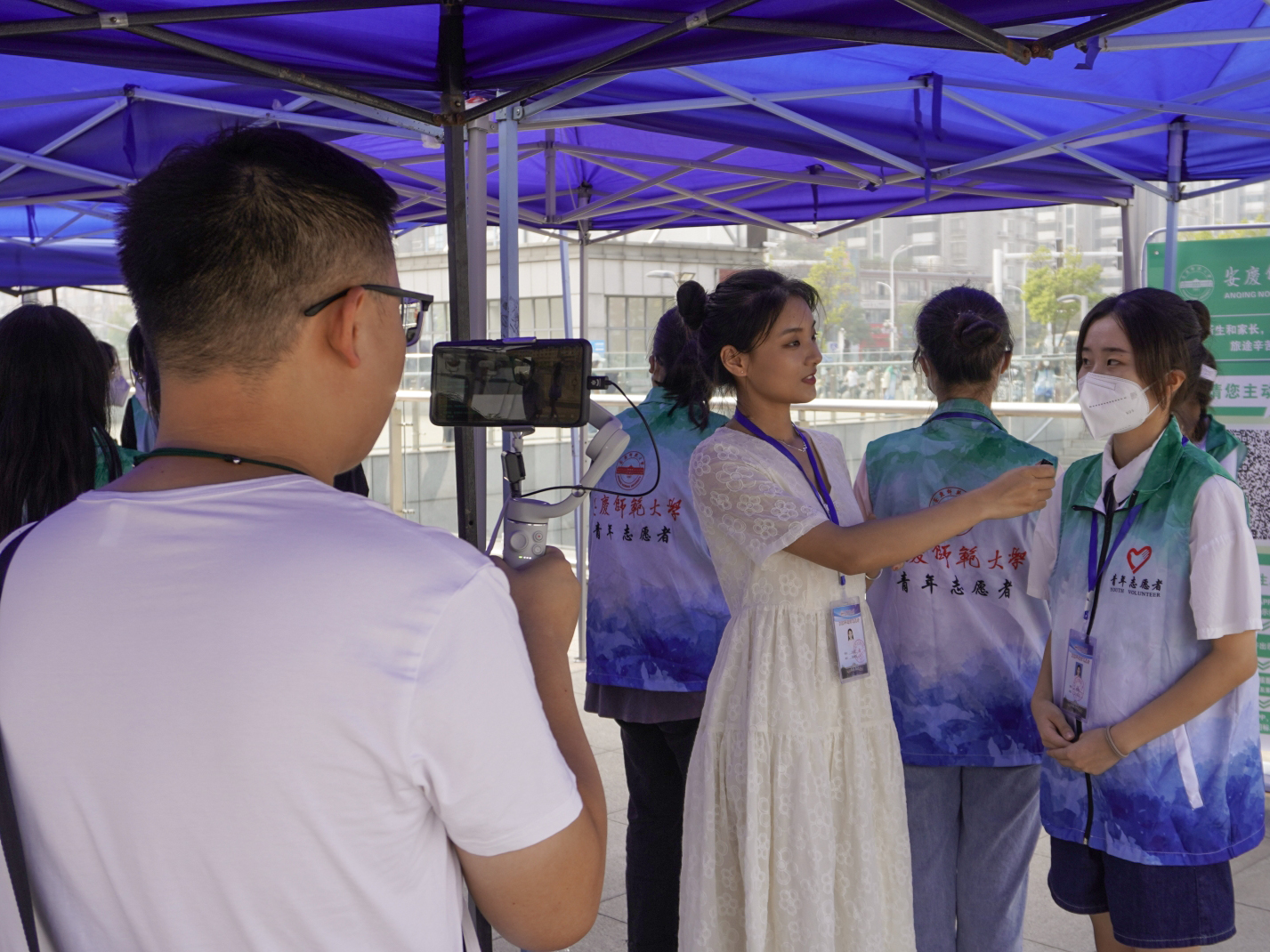 来自河北的陈女士与丈夫驾车一天一夜送女儿报到,“虽然进不了学校,但通过镜头看到志愿者们体贴周到的服务,看到学校有序的安排,我们终于放下心来,在这样温暖的环境里生活,我相信她一定会度过美好愉快的大学时光。”