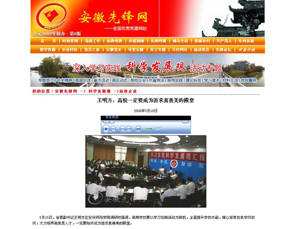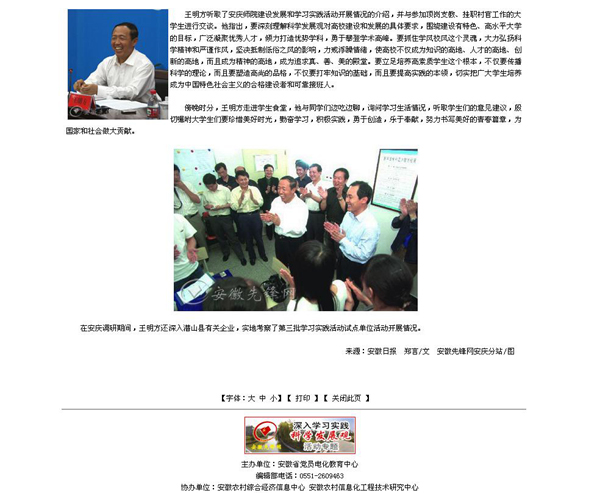 上一篇:人民网安徽视窗 安徽省委副书记王明方到安庆师范学院视察