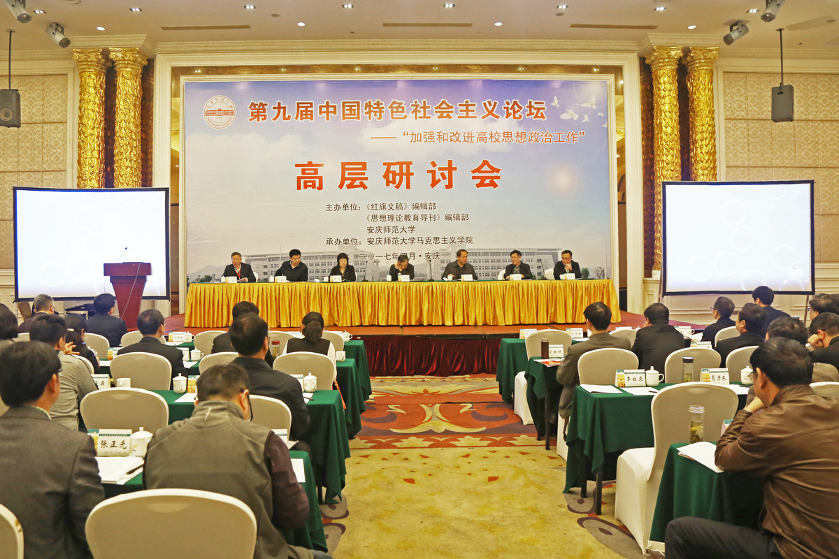 4月15日,第九届中国特色社会主义论坛——“加强和改进高校思想政治工作”高层研讨会在安庆召开。论坛由《红旗文稿》编辑部、《思想理论教育导刊》编辑部、beat365英国官网网站联合主办,beat365英国官网网站马克思主义学院承办。来自清华大学、北京师范大学、武汉大学等全国六十余所高校的120余名专家学者参加。