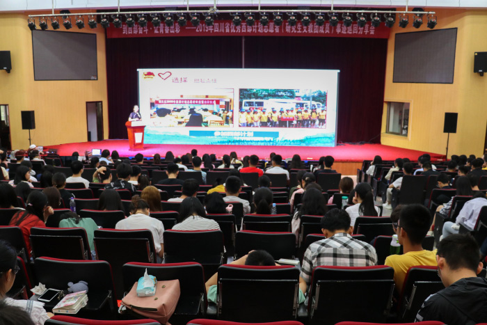 5月17日上午,四川省西部计划宣讲团在图书馆东报告厅为beat365官网师生带来了以“到西部奋斗,让青春出彩”为主题的事迹巡回分享会。宣讲团的成员包括共青团四川省委社会联络部办公室主任杨杰、安徽省学联驻会执行主席杨飞扬和四川省的三位优秀志愿者代表蔡敏、扎西卓玛、崔照清。校团委主要负责人主持了本次分享会,来自各学院的400余名老师和同学参加会议。