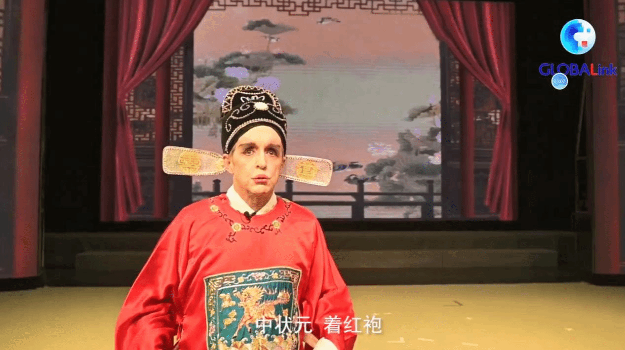 2021年11月,外教道格拉斯体验黄梅戏节目在新华社全球频道播出