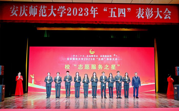 今年,校团委实践创新部部长严峻荣获“全国优秀共青团干部”称号,美术学院团委书记孟莉荣获“安徽省优秀共青团干部”称号,外国语学院商务英语专业2019级学生邵雨楼荣获“安徽省优秀共青团员”称号,1685名学生获得校级“优秀共青团员”荣誉称号,193名师生获得校级“优秀共青团干部”荣誉称号,44名学生获得校级“共青团员标兵”荣誉称号,107个团支部获得校级“红旗团支部”荣誉称号;外国语学院团委、美术学院团委、化学化工学院团委获校“五四红旗团委”荣誉称号,人文学院团委、音乐学院团委、数理学院团委、计算机与信息学院团委、生命科学学院团委获校“先进团委”荣誉称号,马克思主义学院团委、传媒学院团委、黄梅剧艺术学院团委、经济与管理学院团委分别获校“共青团组织建设工作先进集体”“社会实践及志愿服务先进集体”“学生校园文化活动先进集体”“共青团促进大学生就业工作先进集体”荣誉称号。