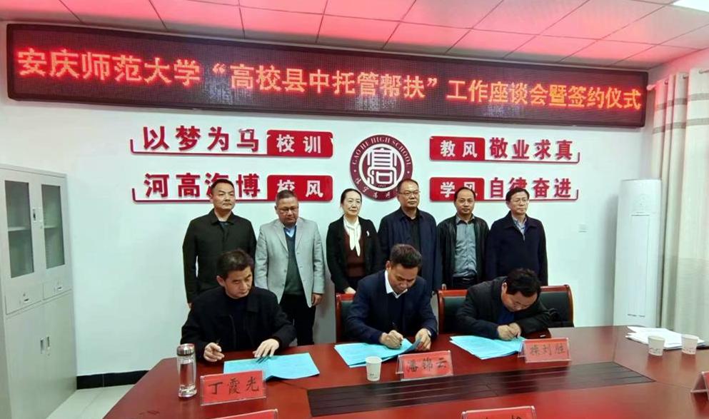 座谈会上,丁霞光致欢迎辞,对学校托管帮扶怀宁县教育事业表示感谢;陈党生对三所县中提出了具体要求;怀宁高河中学校长操刘胜代表三所中学作表态发言。beat365官网教务处主要负责人代表学校与丁霞光、操刘胜签订县中托管帮扶三方协议书。(撰稿、摄影:宛金龙 编辑:江伟 审核:潘锦云 陈秀)