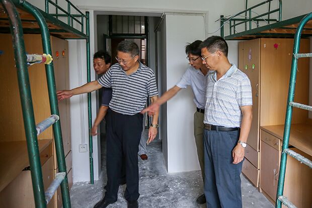 闵永新、汪时珍、刘友忠等校领导带领巡查组一行深入校园,对校园环境、学生宿舍、运动场、食堂、教学楼、图书馆等部位及教学条件保障等情况进行了全方位巡查。每到一处校领导都认真查看,详细询问工作进展情况,要求相关单位和部门克服困难,解决问题,加快工作进度,以饱满的热情和崭新的姿态迎接新学期到来和安庆市创建全国文明城市迎检工作。