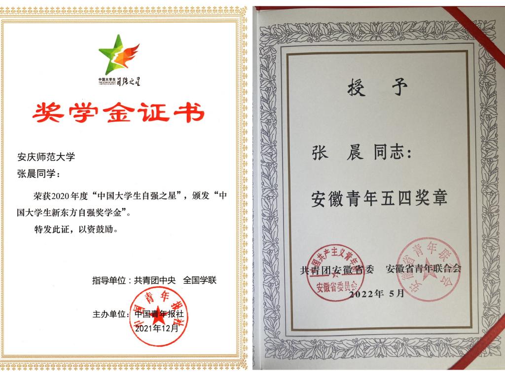 盲人研究生张晨荣获“中国大学生自强之星”“安徽青年五四奖章”称号