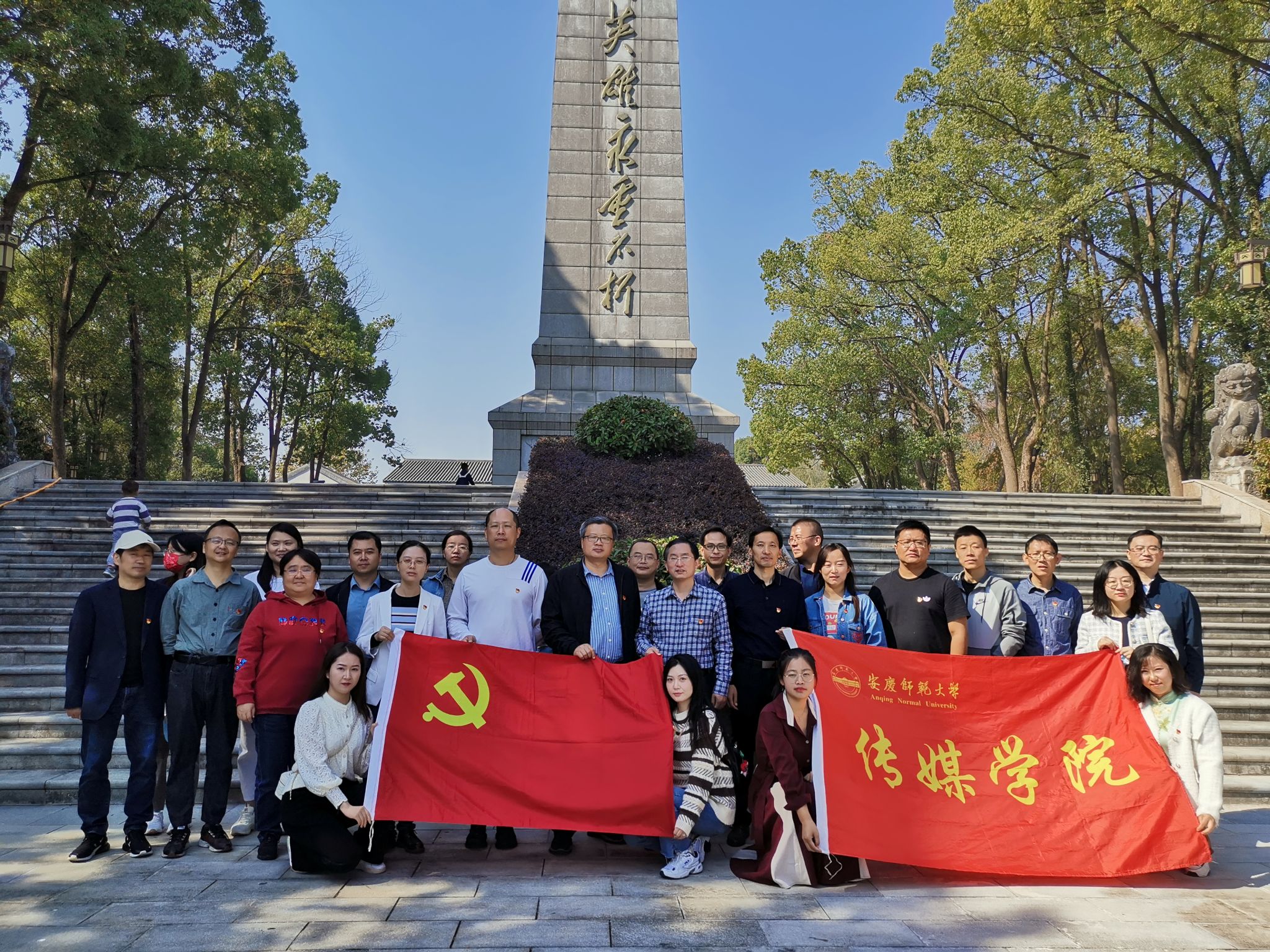 2022年10月22日,传媒学院全体党员到潜山烈士陵园开展红色革命教育活动