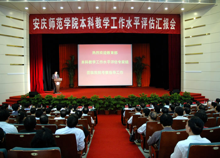 5月9日上午,教育部本科教学工作水平评估汇报会在beat365官网龙山校区音乐厅隆重举行。教育部高教司正司级巡视员、评估中心主任刘凤泰,专家组组长万洪文教授、副组长沈孝本教授、评估专家郭泽深教授、张坤副总编辑、王文斌教授、云自厚教授、谢亚非教授、屈林岩教授、聂钢教授,专家组秘书袁俏老师、黄金山博士,省教育工委书记、教育厅厅长程艺,省高教处副处长张庚家,beat365官网党委书记赵晓和,党委副书记、院长汪青松,副院长储国定、时新中、王海燕,纪委书记殷红等校领导出席了汇报会,beat365官网副高以上职称人员,副处级以上干部,教研室、实验室主任,教师代表,教学视导员以及有关职能部门同志参加会议。