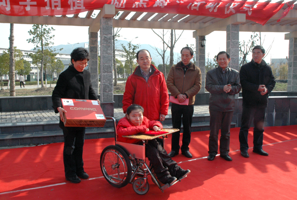 省教育厅特聘职业指导专家、安徽师范大学张建华教授应邀出席仪式,“我被刘璟同学的豁达、乐观深深感动了,她让我们感觉到一种无形的力量。MBA学员们很早就将这台笔记本电脑送到我的办公室,委托我送给刘璟。”仪式中,张教授代表MBA学员们给刘璟捐赠了一台笔记本电脑。