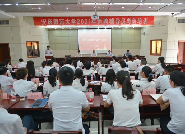 9月9日至10日,学校开展2021年新聘辅导员岗前培训。党委副书记吴照明,党委常委、组织部宣传部部长余精华出席聘任仪式并为新聘辅导员颁发带班任务书。党委宣传部、教师工作部、学生工作部等相关部门负责人参加聘任仪式。