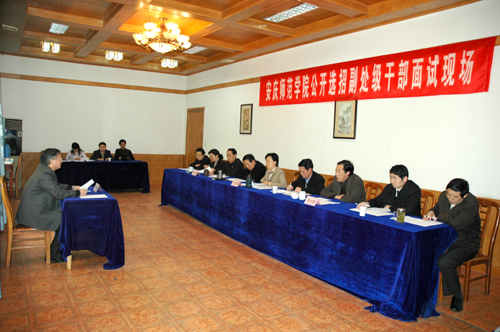 此次公开选招副处级干部将按笔试成绩30%与面试成绩70%加权计算总成绩,取前两名作为考察对象,经校党委会研究后确定公示人选,对公示通过的人选,按照有关规定办理任用手续。(文/从光梅 摄影/ 计裕人)