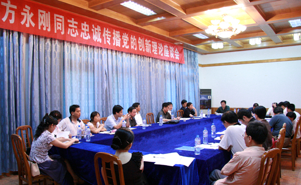 党委书记赵晓和在座谈会上指出,方永刚同志在平凡的岗位上做出了不平凡的业绩,为我们高校哲学社会科学工作者和思想政治理论教育工作者,树立了光辉的榜样。学习方永刚同志,重要的是学习他的精神,他的精神实质就是真学、真信、真情传播、真诚实践党的创新理论。深入学习方永刚先进事迹,一要学习他坚定对党的理论信仰,忠于理想、矢志不渝的政治立场;二要学习他深入学习研究党的创新理论,追求真理、刻苦钻研的学习品格;三要学习他积极传播党的创新理论,牢记责任、不辱使命的科学态度;四要学习他模范践行党的创新理论,学以致用、为人师表的师德风范。