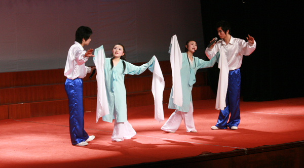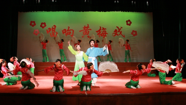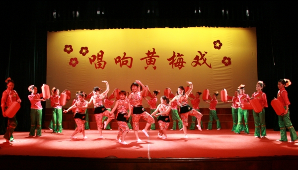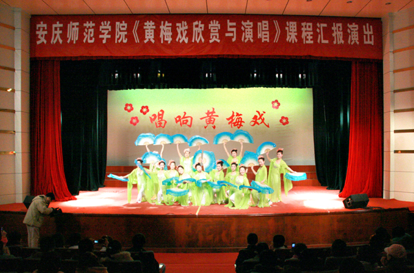 汇报演出以载歌载舞的《天仙配•鹊桥》拉开序幕,全场演出形式多样,同学们热情高涨,激情飞扬。《杉木水桶》格调清新,《海滩别》情深意浓,《梦会》断人肝肠;互动节目中,京剧、豫剧、越剧、黄梅戏各大剧种各显身手,交相辉映,精彩纷呈,高潮迭起,演出在轻松活泼的黄梅精曲联唱中落幕。全场观众起立,报以热烈的掌声。演出获得圆满成功。