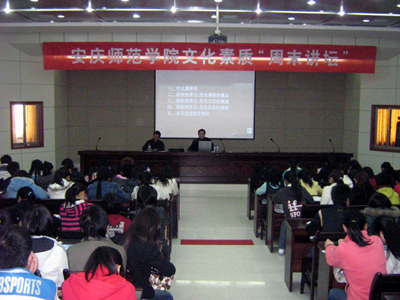 讲座过后,同学们纷纷表示获益匪浅,对举办文化素质“周末讲坛”表示热烈欢迎,认为其对于校园文化建设和提高他们自身文化素质的有着良好的引导作用,也为他们提供了一个丰富知识、扩展视野、陶冶情操、探讨与交流的平台。文化素质"周末讲坛"将继续本着文化性、青年性的特色要求,每周定期在龙山、菱湖校区举办。(安庆师范学院文化素质“周末论坛”学生工作组:麻先锋)