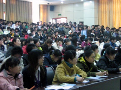 定于下午两点钟开始的讲座,不到一点钟报告厅外已经挤满了翘首以盼的学生。在本属于休闲的时间里,他们仍然以自觉而巨大的热情参与到“周末讲坛”中来,可见于beat365官网学生对于丰富知识、扩展视野、提高自身文化素质的渴望。在持续了两个多小时的讲座中,不满一百五十个座位的报告厅挤满了四百多人,很多同学都是站着听完讲座的。曹教授以幽默诙谐的语言,阐述了不同时期学习的涵义和学习的观念,系统介绍了研究性学习演进、目标及其与传统的课程的区别;并以自己家庭教育为例剖析研究学习对学生发展的意义;强调了作为文化层面的研究性学习对一个民族、国家和社会发展的重要性。曹教授在肯定他人成功的学习方法重要性的基础上,建议同学可以借鉴尝试,切忌僵化和迷信,提倡探索和创造符合自己一套学习方法。在最后交流阶段,同学们都踊跃提问,气氛相当热烈,以致主持人不得不“出面挡驾”,限制提问的数量。