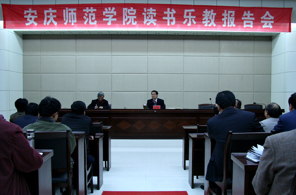 在谈到如何进行读书时,汪院长提出“四带”的观点。他认为,读书应该带着热情和兴趣去读,把读书变成一种习惯,成为我们学习上进的内在动力;读书应该带着项目与任务去读,要围绕我们的现阶段工作,多读些效能建设、细化管理、科学发展观、“四成”教育、通识教育等方面的书;读书应该带着问题探究读,读书如果不带着问题不带着研究去读,就很难取得良好效果;读书应该围绕专题坚持读,学习中发现了新观点应该系统全面地将相关书籍都读一遍,从而把新观念纳入到自己的知识框架中。汪院长还结合自身经验,就如何具体开展读书活动提出了“四读”原则,建议大家要做到经典原著要精读、通识著作要泛读、掌握动态要快读、了解社会要选读。