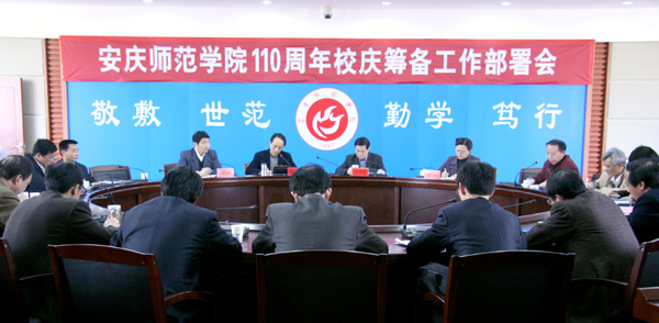 副院长时新中在会上通报了《关于成立安庆师范学院110周年校庆活动办公室的通知》(院字〔2008〕36号),要求按照校庆“两展”主题,加强宣传力度,细化方案,切实履行主要责任单位、牵头单位的职责。校庆办主任黄警钟详细宣讲了《安庆师范学院110周年校庆活动实施方案》。