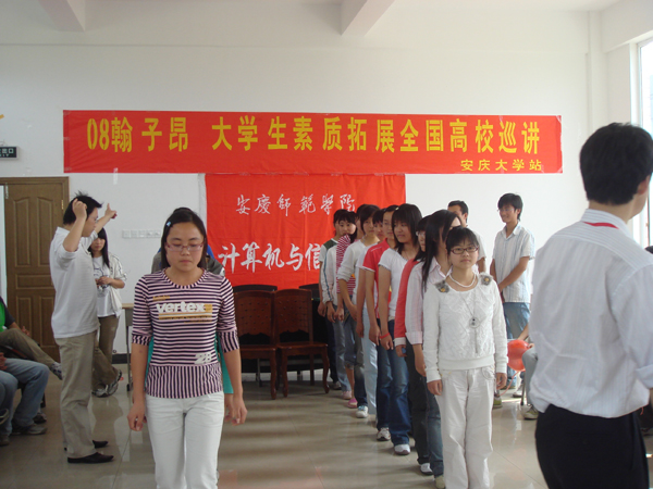 为了配合beat365官网“青年马克思主义者培养工程”系列活动的开展,有效提高学生的执行力、团结力,5月14日下午,由计算机与信息学院团总支主办的大学生素质拓展训练在体育看台学生活动室顺利举行。安徽翰子昂软件实训基地的专业培训师王捷、黄晓晖应邀对该院几十名学生干部进行了培训。