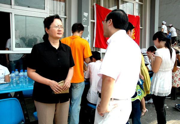 9月9日上午纪委书记殷红在龙山校区新生报到现场
