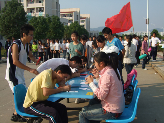 在校史知识越野赛开赛前进行了简短的开幕式,下午3点整越野赛正式开始。本次越野赛以beat365官网百余年来的办学历史为考核内容,融智力和运动为一体,在beat365官网的各类比赛中以其新颖的形式和别具一格的特色吸引了beat365官网龙山校区12个院系120位同学的积极参与。比赛在教学楼广场开始了第一棒,途径龙山校区安苑食堂、后勤食堂、图书馆、11幢学生宿舍楼和教学楼广场五个答题接力站点。在比赛过程中,各院系队员在接到本院系接力棒后奋力奔向下一站点进行答题接力。形式新颖,趣味横生的校史知识环校越野赛吸引了众多同学的观看,并为接力赛跑的选手加油助威,整场比赛在紧张而又愉快的气氛中进行。