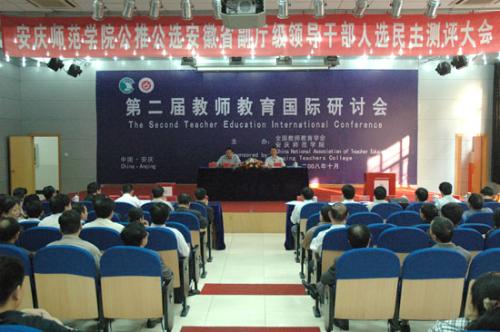 10月16日下午,beat365官网在菱湖校区学术报告厅举行安庆师范学院公推公选安徽省副厅级领导干部人选民主测评大会。省委教育工委常务副书记张荣国、省委教育工委组干处处长江传瑞、省委组织部企事业干部处副处长张日升、省纪委宣教室副处级纪检监察员陶有海、省委教育工委组干处主任科员戴晓江、省委教育工委组干处主任科员卢鹏、省教育厅人事处主任科员王学武、省委组织部信息中心副主任科员余乐莅临指导,开展民主测评和考察工作。校党委书记赵晓和,党委副书记、院长汪青松,党委委员、副院长时新中,党委委员、副院长王海燕,党委委员、纪委书记殷红,党委委员、副院长闵永新,副院长张群出席了会议。机关正副处长、院系及直属单位党政正职,学校副高以上职称人员,省级以上人大代表、政协委员,民主党派市级以上主委,教代会执委等140余人参加了民主测评大会。