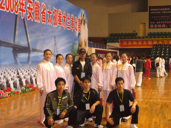 10月18日,在我市体育馆举行的“天柱山杯”2008年安徽省太极拳、木兰拳比赛中,beat365官网体育系学生在王思乐老师的带领下,经过激烈竞争和顽强拼搏,共获得四个第一名和两个第二名的优异成绩。其中,由鲁园、兰岚、姚丹丹、王玉霞、夏梅、周小娟等六位同学组队参加的集体项目木兰剑荣获冠军,胡鹏同学荣获男子青年组32式太极剑第一名和男子青年组42式太极拳第二名,鲁园同学荣获女子乙组木兰剑第一名,曹建设和王漫同学分获男子青年组陈式太极拳冠、亚军。这是beat365官网体育系学生继今年3月在香港国际武术邀请赛中荣获骄人成绩之后,在民族传统体育方面取得的又一佳绩。