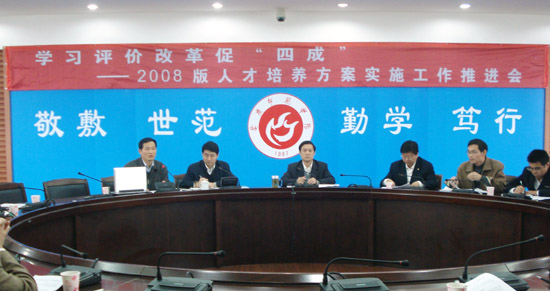 汪青松院长在会上作重要讲话。他指出,现在的学习评价存在三个严重脱节现象,即师生脱节、学评脱节、用评脱节。推行学习评价改革是实施质量工程和落实2008版人才培养方案的重要抓手。在实施学习评价时要注重“三分”,即分类(研究型和应用型)、分层(优秀、良好、合格)、分段(做、学、教、研、训、做六阶段)和“三多”,即多元(分单元进行教学)、多维(多目标进行教学)、多样(考核方式多样化);体现“三性”即差异性、综合性、发展性,最终实现“三结合”,即自我评价与他人评价相结合、过程性评价与终结性评价相结合、选择性评价与发展性评价相结合,形成新型学生学习评价体系,使学生实现“四成”。汪院长强调,学习评价的改革一定要在服务基础教育、实习支教和实施“双进” 工程的过程中进行推进,遵循“探索要大胆,操作要谨慎”的工作原则,坚决保证“三不”,即质量不降低、公平不影响、政策不混乱。