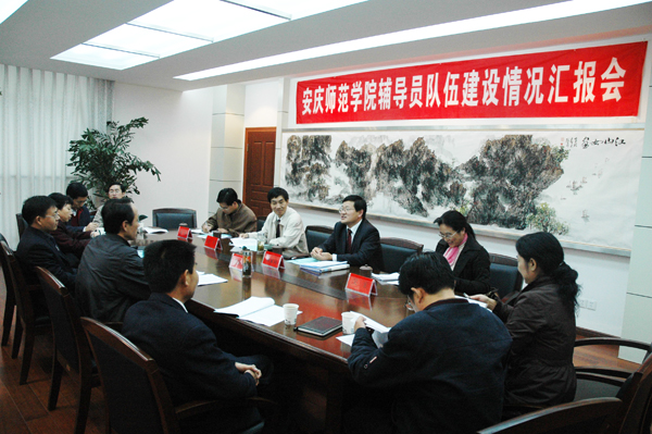 10月30日下午,省教育厅辅导员队伍建设情况检查组来beat365官网检查指导辅导员队伍建设及相关工作情况。安徽师范大学党委副书记、检查组组长顾家山等一行四人在龙山校区行政楼北312会议室听取了beat365官网汇报。汇报会由党委委员、副院长时新中主持。学生处、组织部、宣传部、人事处、财务处和部分院系分管书记、辅导员代表参加了汇报会。
