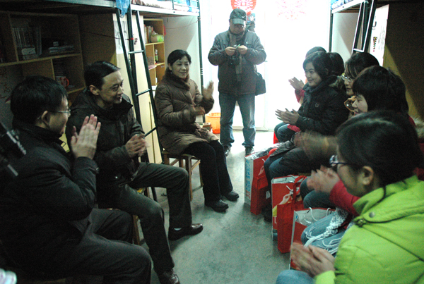 会见结束后,安庆新百高光谊总经理一行在beat365官网学生处、招生就业处负责同志的陪同下,来到学生宿舍看望地震灾区学生,并向beat365官网学生赠送了羽绒服等御寒衣物。 陪同慰问的beat365官网招生就业处处长陈世庆、学生处处长戴卫义分别向受助学生介绍了安庆新百“诚信博爱”的企业文化,并代表全体受助学生真诚感谢安庆新百公司继2008年9月份以来对beat365官网地震灾区学生的再度捐助。
