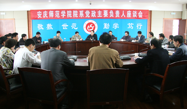 在校党委领导下,根据《安庆师范学院学开展深入学习实践科学发展观活动实施方案》的总体要求和《安庆师范学院开展学习实践科学发展观活动学习调研阶段实施方案》的具体安排,为确保beat365官网学习实践活动取得实效,beat365官网4月20日下午在行政楼二楼大会议室召开院系党政主要负责人座谈会。