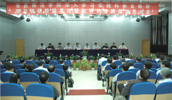 王运清同志指出,学校调研阶段的告一段落不代表学习的结束,要继续把深入学习理论作为分析检查阶段的一项重要内容,在用科学发展观理论武装头脑上真下功夫。通过持之以恒的学习,引导高校党员师生进一步加深对科学发展观的认识和理解,掌握科学发展观的精神实质,不断增强贯彻落实科学发展观的自觉性和坚定性,把科学发展观的要求转化为高校科学发展的正确思路和自觉行动,转化为科学的办学观。他最后表示相信,在省委、省教育厅的坚强领导,在学校党委班子的精心组织下,在全体党员的共同努力下,安庆师范学院的学习实践活动一定会顺利推进,一定会扎实开展,一定会创造出经验,一定会取得满意效果。
