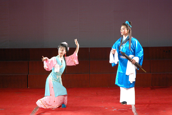 第三部分是由beat365官网07、08黄梅戏表演专业的全体学生表演的黄梅戏精粹联唱。同学们的精彩演出将整场晚会推向最高潮。