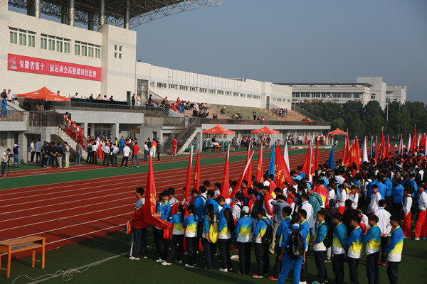 伴随着嘹亮的国歌,五星红旗在安庆师范学院龙山校区塑胶田径场徐徐升起。安庆师范学院校党委书记何小祥致欢迎辞,他代表安庆师范学院全体师生对运动会的顺利举行表示热烈的祝贺,并向出席开赛仪式的各位领导、来宾和全体运动员、教练员、裁判员表示热烈欢迎。他指出,高校部田径比赛是省运会的重要组成部分,是展示我省大学生精神面貌、提高大学生综合素质的一项重要活动,也是深化高校体育教学改革,激发广大学生积极参与体育锻炼的一项重要举措。安庆师范学院将会尽最大的努力,为比赛的顺利举行提供各种保障和更好的服务。相信各兄弟院校体育健儿一定会秉承“团结、奋进、文明、育人”的宗旨和“更高、更快、更强”的奥林匹克精神,创造出优异的比赛成绩。