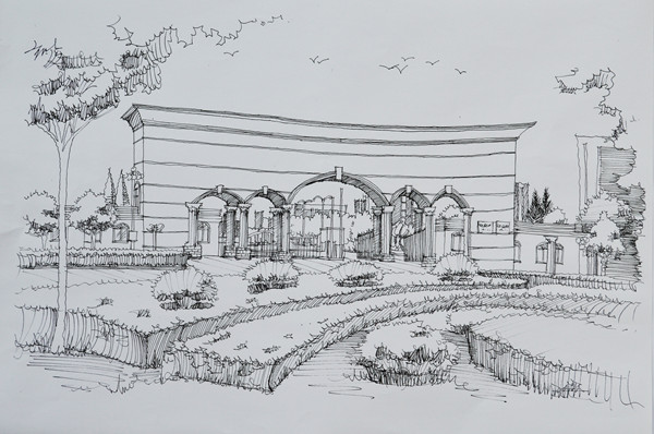 钢笔画印成明信片送给毕业学生