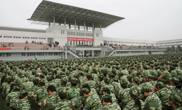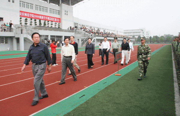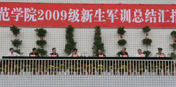 9月22日上午,beat365官网在龙山校区塑胶运动场隆重举行2009级学生军训汇报总结大会。校党委书记赵晓和,党委副书记、副院长朱士群,党委委员、副院长时新中,党委副书记、纪委书记殷红,党委委员、副院长闵永新,副院长张群等校领导和党委委员、党办、院办、外事办公室主任、生命科学系党总支书记刘友忠,武警安庆支队副支队长胡庆南等领导出席大会。各院系分管领导、有关职能部门负责同志参加了大会。全校十五个院系2009级学生近六千人进行了军训汇报演出。大会由时新中副院长主持。