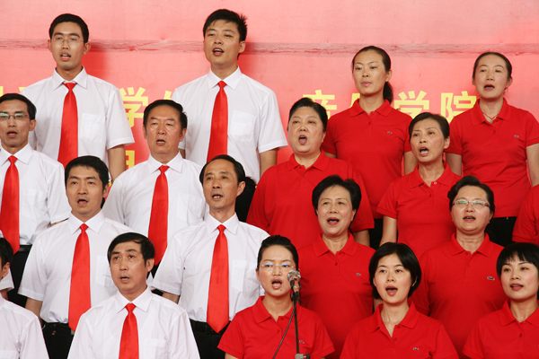 中青年教工是这次红歌队伍中的主力军,他们的热情出乎我们的意料。赵晓和、朱士群、时新中、王海燕、殷红、闵永新、张群等全体校领导都参加了演唱。许多院系机关的负责同志也参与了进来。年轻教师更是比比皆是。