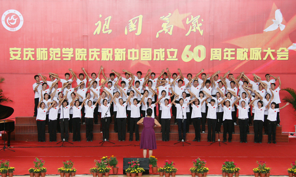 这一切都表明,这是一个重温、追忆、传承光荣传统的日子,这是beat365官网为迎接伟大祖国六十华诞而举行的“祖国万岁”歌咏大会。