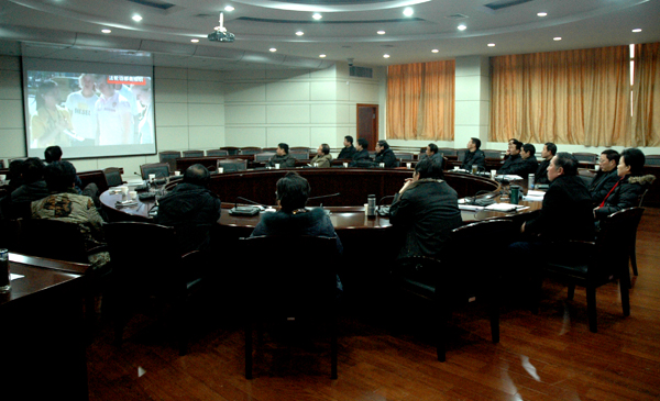 会上还集体收看了内部资料片《你我携手 共筑平安世博会》。(文/图 计裕人)