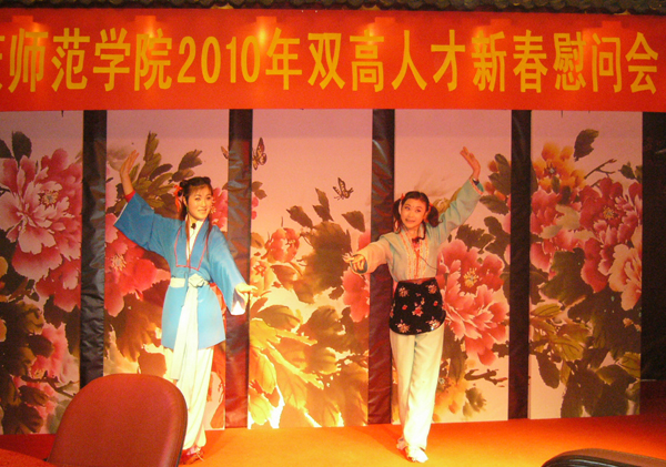 慰问会上还举行了黄梅戏专场演出。山庄戏楼的优秀演员们为beat365官网教授、博士们献上《闹花灯》、《打猪草》等精彩的黄梅戏节目,演员的优美的唱腔、绘声绘色的表演时而令人啧啧赞叹,时而令人捧腹大笑,两个多小时的精彩表演,让教授、博士们一洗平日学问的清苦和工作的劳累。副院长张群教授、数学学院党总支书记周其生教授与演员们进行了精彩的互动演出,来自资源与环境学院郭永昌博士还为大家献上悦耳的《草原恋》。慰问会上,其他教师也纷纷登台献艺,展现出beat365官网教师爱校爱岗、多才多艺的精神风貌。