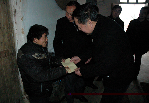 党委书记赵晓和,党委副书记、纪委书记殷红一行首先来到太湖县晋熙镇芭蕉村村部,在详细询问、了解了村里的面积、人口、基本设施建设情况、人均收入、支柱产业等基本情况后,赵书记发表了重要讲话,他认为,芭蕉村位于太湖县老城西部,合九铁路、岳华省道、太徐渠道穿村而过,交通便利,区位优越,近年来基础设施建设得到了很大改善,为加快种植业、养殖业发展,提高居民收入提供了很好的条件。他指出,按照省委组织部的要求,在第三批学习实践科学发展观活动中,挂职干部要为地方办理一件实事,因此,beat365官网党委研究决定在春节前前来慰问贫困家庭,并为芭蕉村购置一台电脑。他希望芭蕉村村委班子能用好这台电脑,多查询、发布有效的致富信息,更好地带领群众发家致富,努力建设好社会主义新农村。