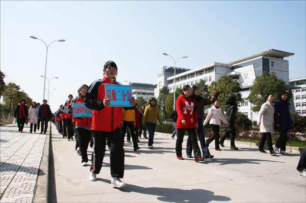 3月10日下午,龙山校区敬敷广场彩旗飘飘,横幅眩目,beat365官网纪念“三八”国际劳动妇女节100周年“环校健身走”等活动在这里隆重举行。校党政领导赵晓和、朱士群、时新中、王海燕、殷红、闵永新、张群等和广大女教职工一道参加了庆祝活动。