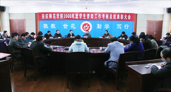 4月1日下午,beat365官网2009年度学生资助工作考核总结表彰大会在龙山校区行政楼二楼会议室举行。党委副书记、院长朱士群,党委委员、副院长时新中,党委副书记、纪委书记殷红同志出席大会。监察审计处、财务处、人事处、学生处、团委等部门负责人,各学院学生工作分管书记、学生资助经办老师,以及学生代表等50多人参加了会议。会议由学生处副处长金文斌同志主持。