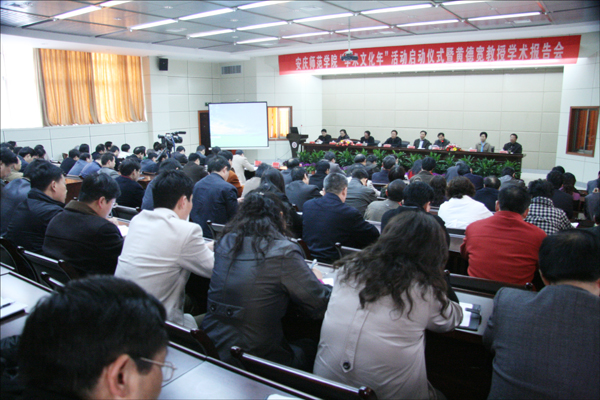 党委副书记、院长朱士群教授在启动仪式上发表重要讲话。他认为,学术文化活动是大学最基本活动,也是学校的最基础性建设、最本质属性之一。学校开展学术文化年活动的主要目的在于引导全校师生更加重视学术文化活动,大力营造尊重学术、追求学术的风气;在于加强学校学术文化生态建设,夯实教学、科研基础,更好地实现教书育人的宗旨;在于以学术交流和学术基层组织建设为重点,争取在学校学术文化发展的薄弱环节方面取得突破;在于为形成学校学术文化建设长效机制,积累经验,形成制度成果。