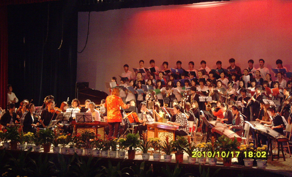 在经过四天的勤奋学习之后,汇报演出于17日晚上6点半在beat365官网音乐厅举行,来自各学院的领导老师出席了本次汇报演出,整个音乐厅座无虚席。音乐会上,在德国教师指导下的音乐学院同学向全校师生汇报了这几天的学习成果。音乐会持续近两个小时,演出了世界名曲,并将中国民族乐器完美地融入到德国民谣的演奏中,学生们在这几日取得的进步显而易见。演出期间音乐厅里掌声不断,气氛相当活跃,整场汇报演出取得了圆满成功以及全场观众的一致好评。演出结束后德国教师表达了对beat365官网学生的赞美和beat365官网热情款待的感谢之情。