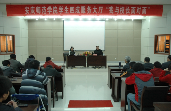 12月22号下午2:30,由学生“四成”服务大厅主办的“我与校长面对面”活动在龙山校区行政楼一楼会议室正式举行。党委委员、副院长闵永新应邀参加了此次活动。另外到场的嘉宾有后勤管理处、新校区建设办公室、国资处、后勤集团、校医院、学生处等部门相关领导。活动中闵永新副院长与来自全校各院系130多名学生代表围绕着学生“四成”和beat365官网后勤工作展开了亲切的交流。这是beat365官网今年开展的第二次“我与校长面对面”教育活动。