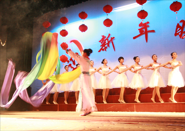 2010年12月31日晚,校龙山校区音乐报告厅里张灯结彩、歌声嘹亮,由校工会、团委、学生处和音乐学院联合主办的迎新年文艺晚会在这里隆重举行。党委书记何小祥,党委副书记、院长朱士群,省政协常委赵晓和,党委委员、副院长时新中,党委副书记、纪委书记殷红,党委委员、副院长闵永新,副院长张群,党委委员、党办、院办、外事办主任刘友忠和学校老领导丁伯华等亲临晚会现场,和师生员工共庆良宵。