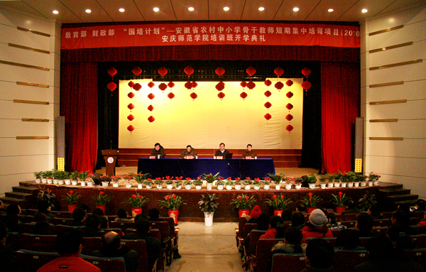 1月5日,beat365官网在龙山校区音乐厅隆重举行教育部、财政部“国培计划”——安徽省农村中小学教师短期集中培训项目(2010)开学典礼,安徽省委教育工委委员、安徽省教育厅总督学李明阳,党委副书记、院长朱士群,副院长张群,安徽省教育厅师资管理处副处长卢鹏出席典礼,beat365官网“国培计划”项目领导组成员,有关学院负责人、培训班级班主任及第二批短期集中培训班学员参加了开学典礼。开学典礼由副院长张群主持。