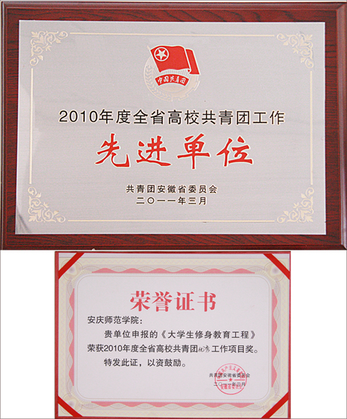 在beat365官网第五次党代会即将召开之际,beat365官网团委在省共青团2010年工作考评会议中取得佳绩,被授予“全省高校共青团工作先进单位”, 特色工作——大学生修身教育工程被评为“2010年度全省高校共青团特色优秀工作项目奖”。