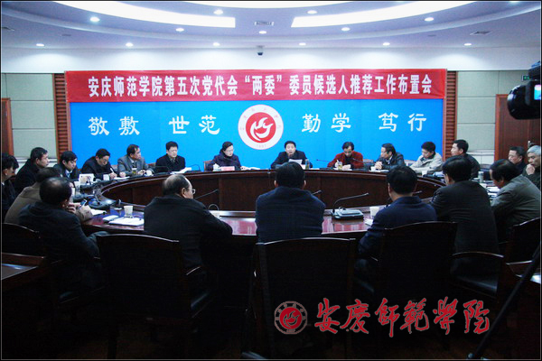 会上,党委组织部部长陈光明同志宣读了《关于做好中国共产党安庆师范学院第五次党员代表大会“两委”委员候选人推荐工作的通知》。党校常务副校长、组织部副部长王先民从会前、会中、会后对第五次党代会“两委”委员候选人第一轮推荐工作的具体操作程序和相关问题作了说明。(计裕人)