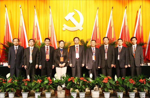 第五届中共安庆师范学院委员会(左起:方锡球、刘友忠、张群、殷红、何小祥、朱士群、闵永新、汪时珍、陈光明)