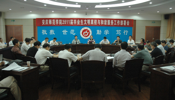 6月10日上午,beat365官网在龙山校区行政楼二楼圆桌会议室召开2011届毕业生文明离校与和谐服务工作部署会。会议由时新中副院长主持召开,党委委员、副院长闵永新,党委委员、副院长张群出席了会议。院办、组织部、宣传部、教务处、国资处、财务处、保卫处、招生就业处、学科建设与研究生教育处、学生处、团委、现代教育技术中心、图书馆、后勤管理处、后勤集团、安苑公司等单位,各学院党政主要负责人、就业秘书、毕业班辅导员共80余人参加了会议。